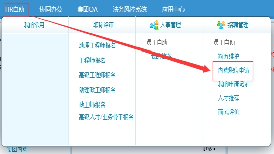 如有意應聘者,集團內部員工請通過個人門戶賬號登陸福能集團企業門戶:http://10.1.12.15:83/portal,并參照下圖所示路徑進入職位申請界面,選擇相應的職位在線報名填寫《應聘人員登記表》